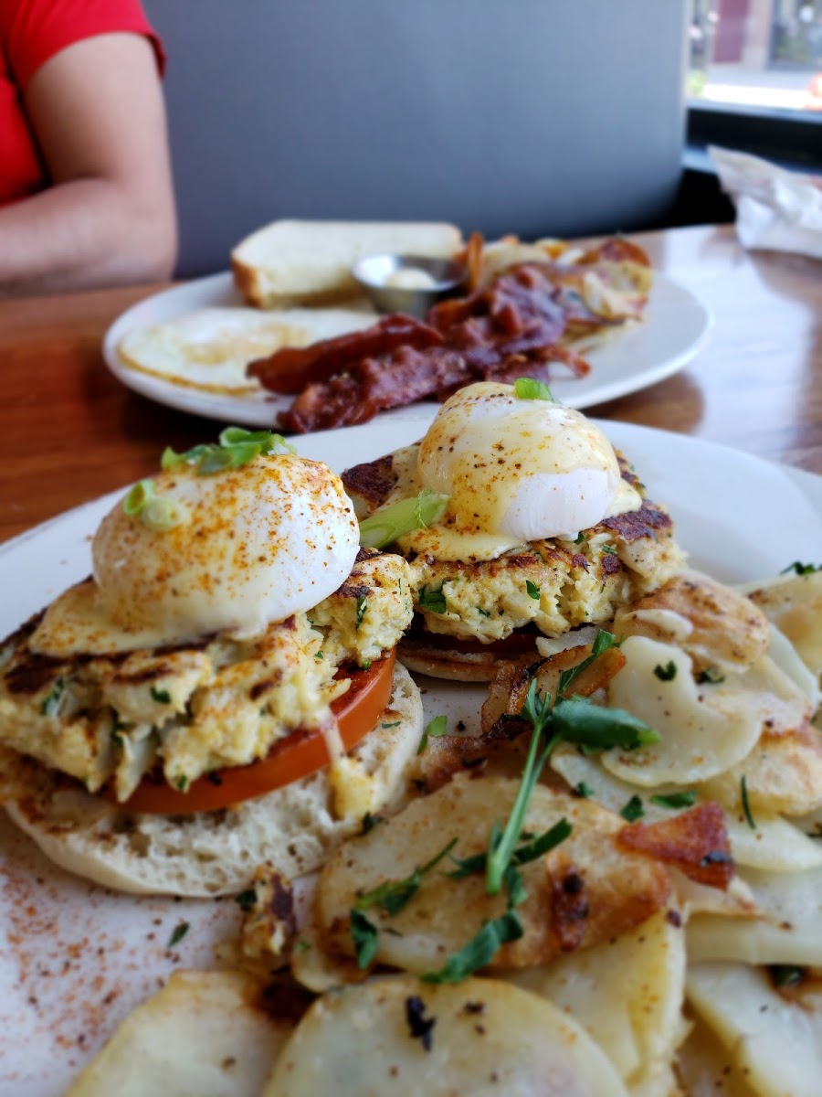 The menu is a delightful adventure, showcasing a variety of dishes that cater to both the savory and sweet palates. One standout item is the Big Brunch Bowl, an irresistible concoction featuring a medley of Canadian and crispy bacon, spicy chorizo, and creamy stone-ground grits topped with poached eggs, Cheddar cheese, pico de gallo, and a drizzle of chipotle butter—all for just $13.50! For seafood lovers, the Crab Hash will tantalize your taste buds with lump crab meat, home fries, poached eggs, and a unique chipotle hollandaise seasoned with Old Bay, priced at $18.50.